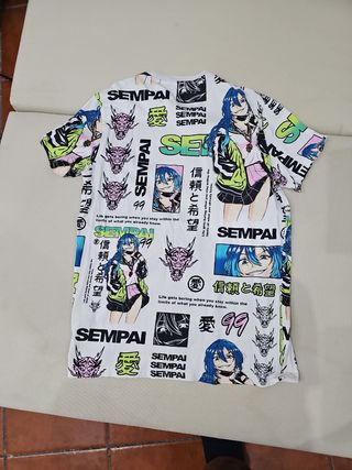 Camiseta blanca estilo anime de bershka talla S de la marca bershka