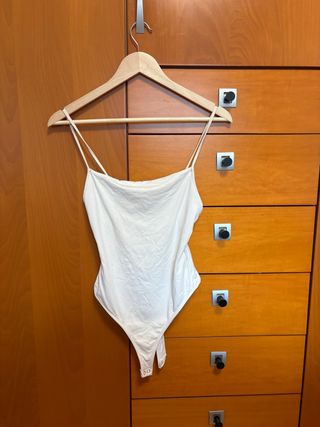 Body de tirantes en un suave tono rosa clarito. - Diseño con tirantes finos. - Cierre de corchetes en la parte inferior.
