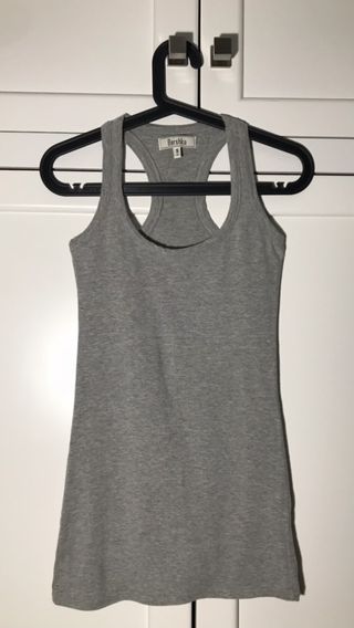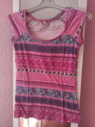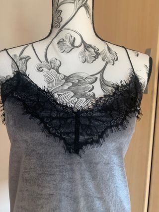 Top sin mangas con forro que no transparenta más que donde se puede, pero no el sujetador.Es una talla M que talla pequeño.