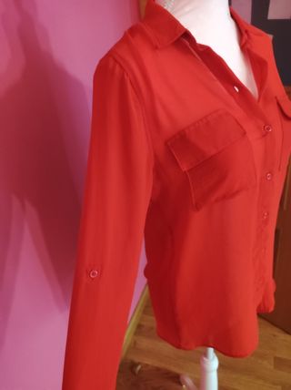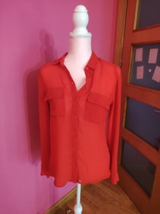 Camisa roja de Bershka un poco transparente. Usada 3 o 4 veces, en perfecto estado. Talla M.