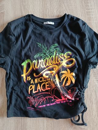 camiseta de raso con lazo. talla S pero vale para M. esta practicamente nueva piesya dos veces. es de bershka