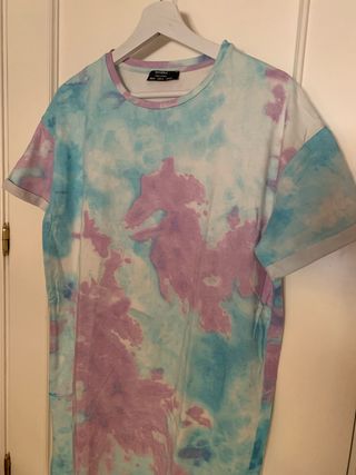Camiseta tipo vestido tie-dye en azul y morado. - Talla M (larga)