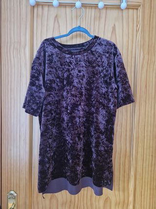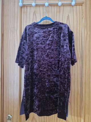 Camiseta de terciopelo color morado. Es de manga corta y tiene un corte amplio y cómodo. Tejido suave y agradable al tacto