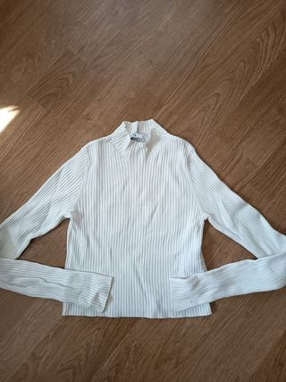 Top de manga larga con cuello alto y tejido acanalado. - Diseño ajustado. - Manga larga. - Cuello alto. Tiene una pequeña mancha en la manga y un poco desgastado pero en buen estado. Cualquier duda preguntame sin compromiso alguno 😊 #topmangalarga #camisetamujer #topbershka #topmujer