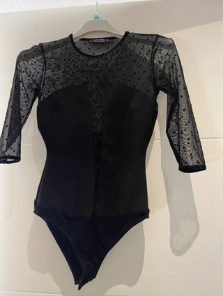 Body de Bershka con un diseño elegante y moderno. - Mangas largas de malla con lunares. - Cuerpo principal opaco. - Escote redondo.