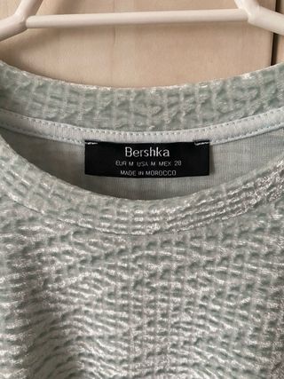Camiseta corta de Bershka con diseño llamativo. - Manga larga. - Estampado frontal y en mangas. - Cuello cisne Hombro 32 cm, pecho 36 cm, largo 34 cm
