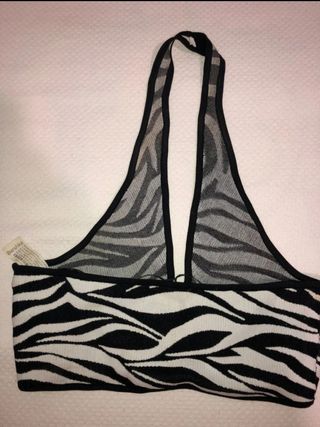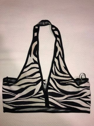 Body super elastico, con cierte de clip en la parte inferior, de tirantes con abertura debajo del pecho, con espalda en V. Es de color negro con brillo plateado. Hago lotes de ropa.