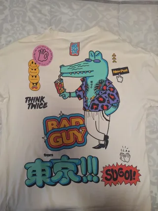 Top ajustado con un llamativo estampado de dragón. - Diseño frontal con dragón multicolor. - Corte moderno y favorecedor. Poco usado
