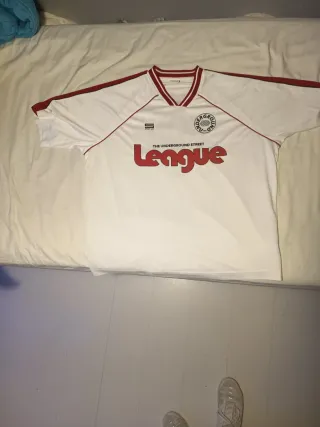 Camiseta con un diseño moderno y llamativo. - Cuello en V con detalles rojos. - Logo circular Underground League en el pecho. - Inscripción The Underground Street debajo del logo. - Mangas cortas con ribete rojo.
