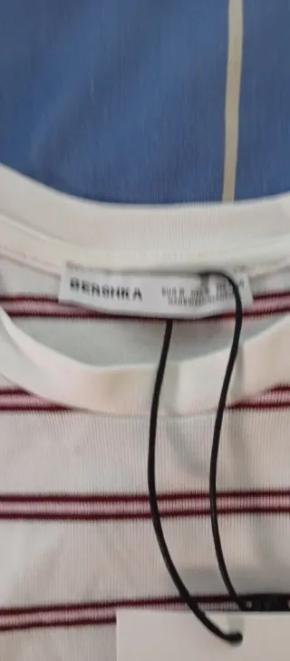Top de Bershka con un diseño de canalé fino y un cuello con detalles de rayas. Las mangas cortas también presentan un ribete a juego. - Tejido acanalado. - Cuello redondo con detalle de rayas. - Mangas cortas con ribete.