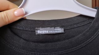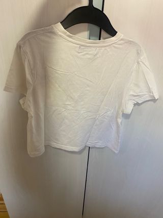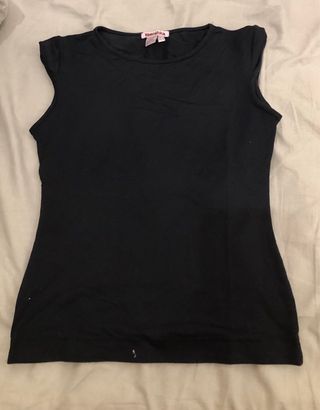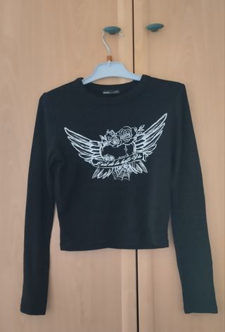 Camiseta negra de Bershka cortita de la barriga. Talla 10-12.