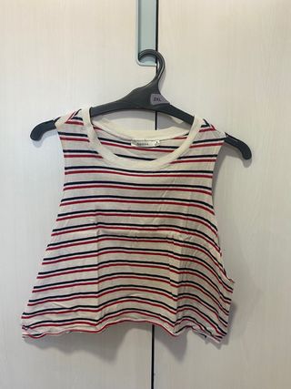 camiseta/top de tirantes de rayas rojas y blancas de la marca Bershka. Es de talla M. Está en muy buen estado. - Diseño a rayas. - Corte cropped. - Talla M.