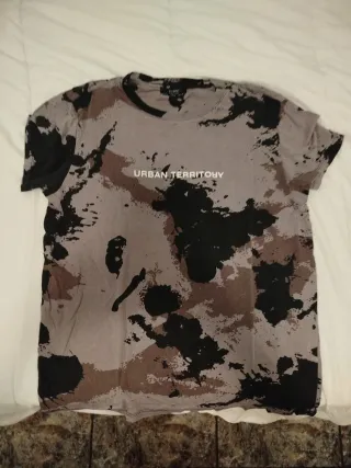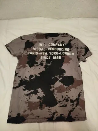 Camiseta de Bershka con un diseño moderno y llamativo. - Estampado tipo camuflaje en tonos grises y negros. - Cuello redondo. - Manga corta. - Unisex