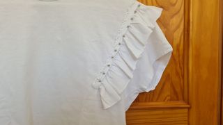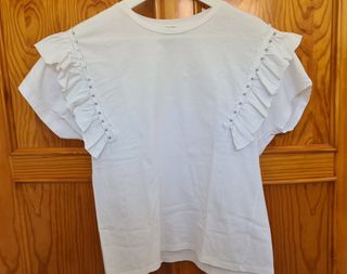 camiseta blanca con volante en la manga