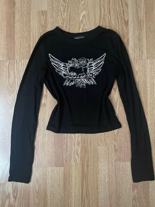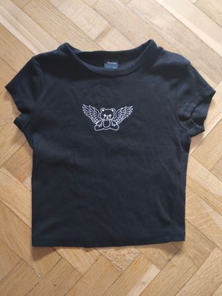 Camiseta Bershka Oso Alado Negra Talla XS