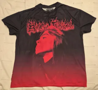 Camiseta Billie Eilish. XL. Como nueva, casi sin usar. Tacto suave como las transpirables. Perfecta para llevar encima de otra camiseta de manga larga. Descatalogada. Coleccionismo. - Diseño con efecto degradado de negro a rojo. - Imagen frontal de la artista. - Cuello redondo y manga corta.