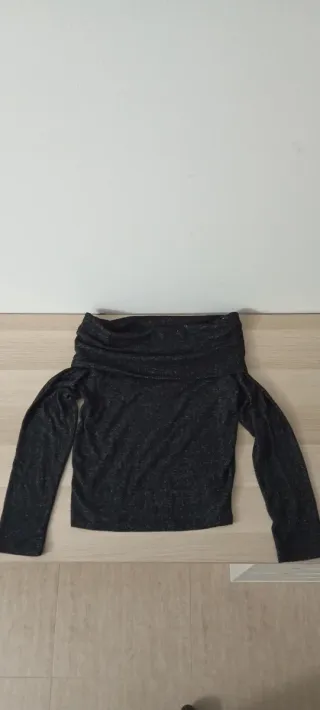 Camiseta con un diseño moderno y elegante, perfecta para destacar. - Tejido con acabado brillante. - Escote Bardot o asimétrico.