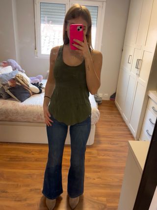 La forma de este top te hace una figura muy mona , color verde oliva .