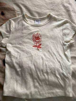 Camiseta Bershka flor roja y llamas