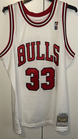 Camiseta de baloncesto Mitchell & Ness de los Chicago Bulls, en talla XL. Es una camiseta blanca, en excelente estado. Original con ticket de compra. - Edición especial NBA Finals. - Diseño con imagen de Rodman y Pippen.