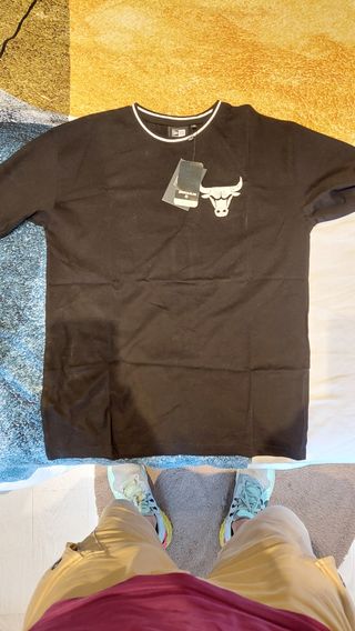 Preciosa camiseta de los Chicago Bulls, talla S. Es de color negro y rojo, una combinación genial. - Marca New Era - Diseño retro con el logo del equipo - Perfecta para lucir el orgullo por tu equipo favorito