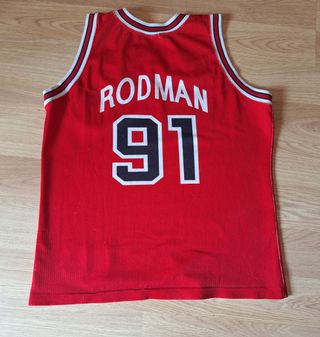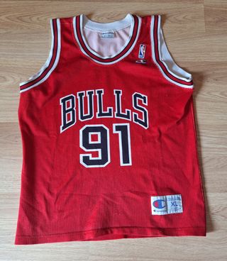 Jersey de baloncesto de los Chicago Bulls con el número 91 ( Dennis Rodman ). Artículo bastante usado como se aprecia en las fotos,talla 164 13/14 XL similar a una s de adulto,ver medidas.