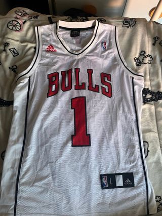 Camiseta de los Chicago Bulls con el número 1. - Diseño clásico de los Bulls. - Logo de Adidas en el pecho. - Número y nombre en la parte frontal.