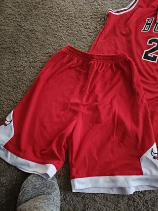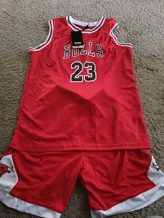 Camiseta y pantalón rojo y blanco con logo Bulls y número 23.