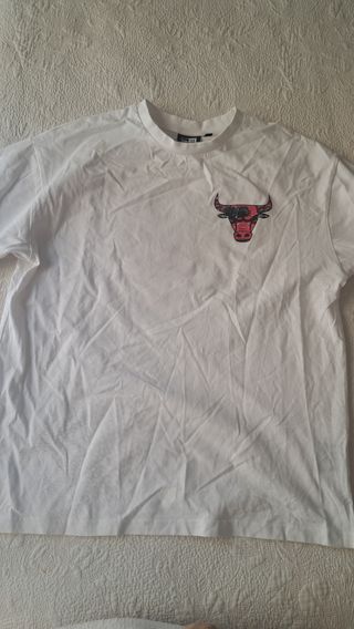 Camiseta blanca de los Chicago Bulls, talla S. Es una camiseta de corte oversize. - Diseño con el logo de los Chicago Bulls en la parte delantera y trasera. - Impresión de buena calidad.