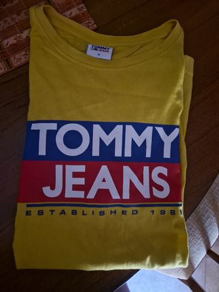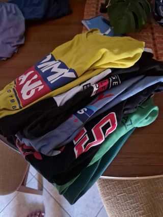 Lote de camisetas de la marca Tommy Hilfiger.1 polo de Armani,camiseta de New era bulls - Variedad de colores, incluyendo amarillo. - Diseños con el logo de la marca y otros estampados. El polo de tmmy es el más usado