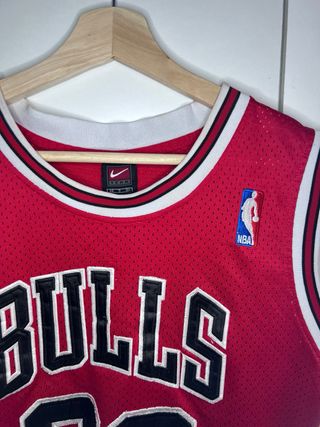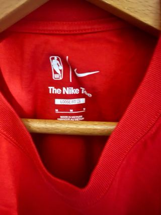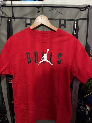 Vendo una camiseta roja de los Bulls de Nike. Está en buen estado. - Talla: M - Corte: Loose Fit. - Marca: Nike - Diseño: Logo de los Bulls.