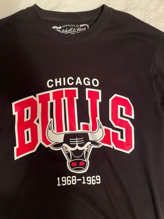 Camiseta negra con el logo de los Chicago Bulls de Mitchell & Ness, esta nueva, usada únicamente dos veces y sin ningún rasguño ni marca. - Diseño clásico de los Chicago Bulls. - Logo de Mitchell & Ness en la etiqueta.