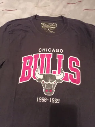 Camiseta negra con el logo de los Chicago Bulls y el texto 1968-1969.POR LIQUIDACIÓN DE TODOS MIS ARTÍCULOS,,MIRA TODO LO QUE TENGO EN MI PERFIL,,SE ENTREGA EN MANO EN BARRIO DE LA JOTA,,NO ENVÍO. - Diseño clásico de los Chicago Bulls. - Logo de Mitchell & Ness en la parte inferior.