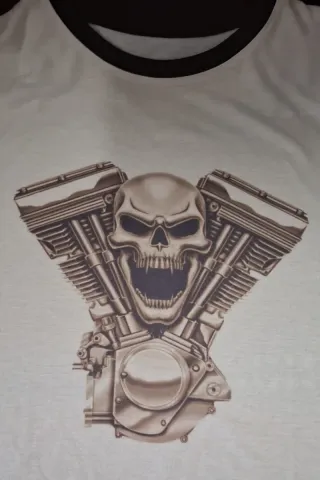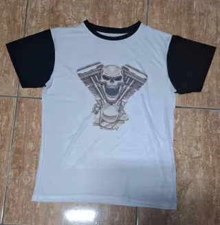 Camiseta con diseño de motor y calavera. - Mangas de color negro. - Cuerpo de camiseta en color blanco. - Poliester tacto algodon