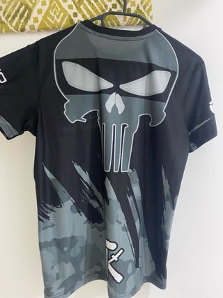 Camiseta de manga corta con diseño de camuflaje y la calavera del GEO. Perfecta para regalar a cualquier opositor esta navidad! Talla S pero queda grande, más bien como una M.
