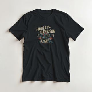 Diseño disponible en todas las tallas de Camisetas. Si estas interesado indica en el chat que talla quieres y te haré un anuncio personalizado para ti. Ten en cuenta que el tiempo de envio es de 15 dias aproximadamente. ESTAMPADO DTG (tinta inyectada), solo frontal. Camiseta con un diseño gráfico llamativo de Harley-Davidson. - Estampado frontal con calavera, casco y serpientes. - Logo de la marca integrado en el diseño. - Cuello redondo y manga corta.