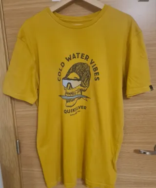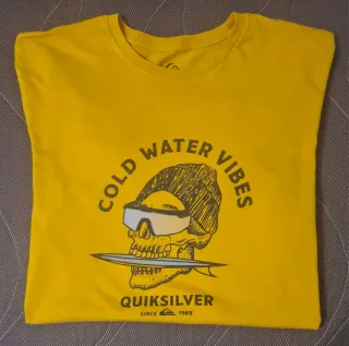 Camiseta de manga corta con estampado gráfico. - Diseño frontal con calavera, gafas y tabla de surf. - Texto COLD WATER VIBES y logo QUIKSILVER SINCE 1969 en la parte inferior.