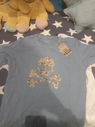 Camisetas de manga corta con un llamativo diseño. - Estampado de calavera negro y amarillo practicamente a estrenar. - Estampado azul marino de leon a estrenar con etiqueta. Por separado se vende a 20€ unidad, juntas a 15€ unidad