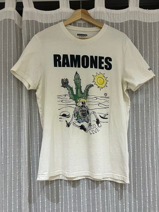 Camiseta con un diseño gráfico llamativo de Ramones. - Estampado frontal con calavera, cactus y sol. - Cuello redondo y manga corta.