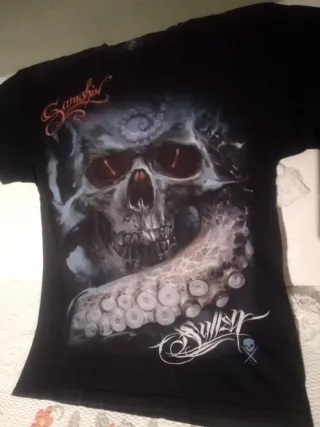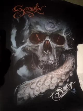 Camiseta de manga larga de la banda Dropkick Murphys. -Nueva sin estrenar y con el embalaje original -TallaXL,Pecho 62cm, Largo 75cm - Diseño frontal con calavera y huesos cruzados. - Estampado Dropkick Murphys con trébol. - Cuello redondo -algodon Más en mi perfil