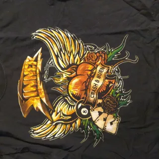 Camiseta con un llamativo diseño gráfico. - Estampado frontal con ancla, fuego y calavera. - Detalle de CRASH & BURN en una cinta. - Incluye un dado de billar y cartas de póker.