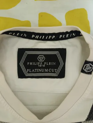 Camiseta de manga corta con un llamativo diseño frontal.buen estado - Estampado de calavera con un rayo. - Detalle del logo Philipp Plein 1978 en la parte inferior. - Cuello redondo y manga corta.