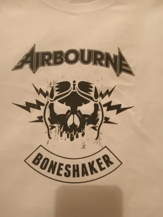 Camiseta de la banda Airbourne con diseño Boneshaker. -Nueva sin estrenar y con el embalaje original -TallaXL, pecho 60cm, largo 75cm - Estampado frontal con calavera y logo. - Manga corta. - Cuello redondo. Más en mi perfil 🤘