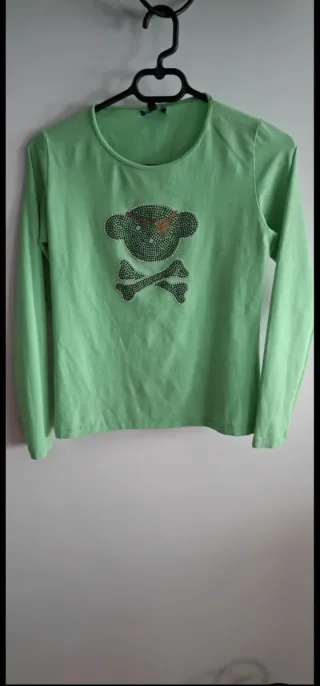Camiseta de manga larga con un divertido estampado. - Diseño de oso con calavera y tibias cruzadas. - Detalles brillantes en el estampado.
