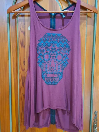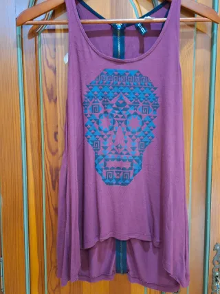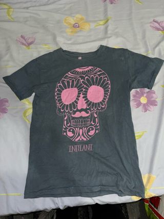 Camiseta con un diseño de calavera en la parte frontal. Medidas: hombros 46, mangas 18, largo 69 - Estampado blanco de calavera. - Cuello redondo. - Manga corta.
