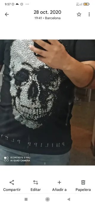 Camiseta con un llamativo diseño inspirado en Philipp Plein. Talla XL pero para una S/M - Estampado frontal con calavera y billete de 100 dólares. - Logo de Philipp Plein en la parte inferior.
