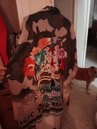 Camisa con un diseño llamativo y original. TALLA DA HASTA 50/52 CURVY,UN SOLO USO - Estampado de camuflaje y calavera con flores. - Cierre de botones. - Diseño único y colorido.