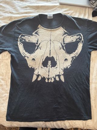 Camisetas con motivo de calavera del Viñarock. Muy poco uso, talla L. Solo queda 1. Si se necesitan medidas exactas, no dudéis en preguntar!! Precio negociable.