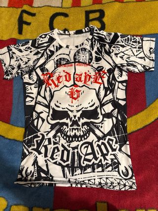Vendo camiseta de manga corta de color roja, con una calavera en el centro. Como NUEVA, apenas ha sido usada, en perfectas condiciones. Marca IN EXTENSO, talla S. Se entregaría planchada (las arrugas son de estar plegada). Para más info o fotos contactar sin compromiso.