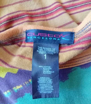 Camiseta Custo Barcelona original con diseño gráfico muy llamativo. En buen estado general. Estilo único y diferente, muy característica de la marca. Hombros 57 cm, largo 62 cm. Prenda especial para quien busca algo distinto.
